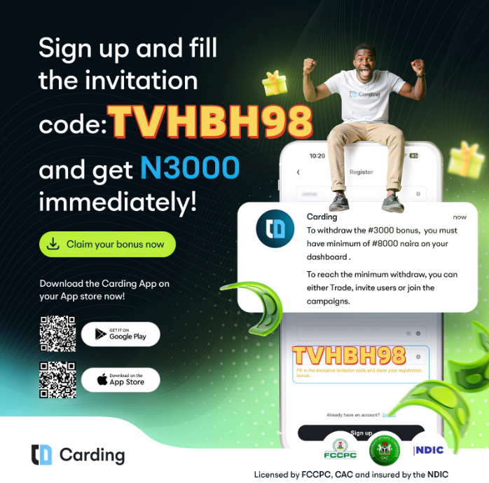 When you sign up and enter the promo code below, you’ll get a ₦3,000 instant bonus in your wallet!