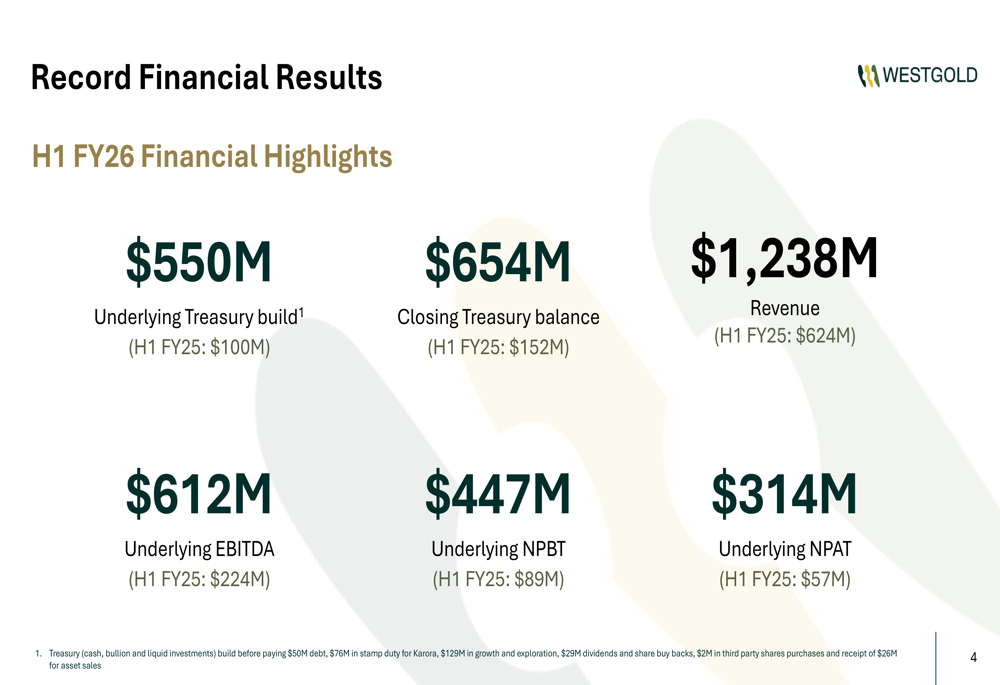 Westgold H1 FY26 slides: record A$314M profit on 195koz output